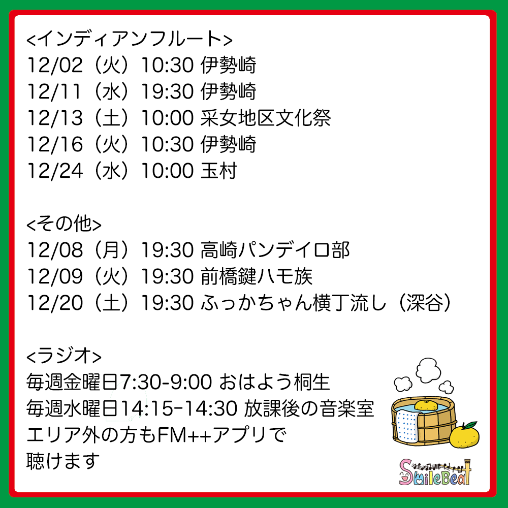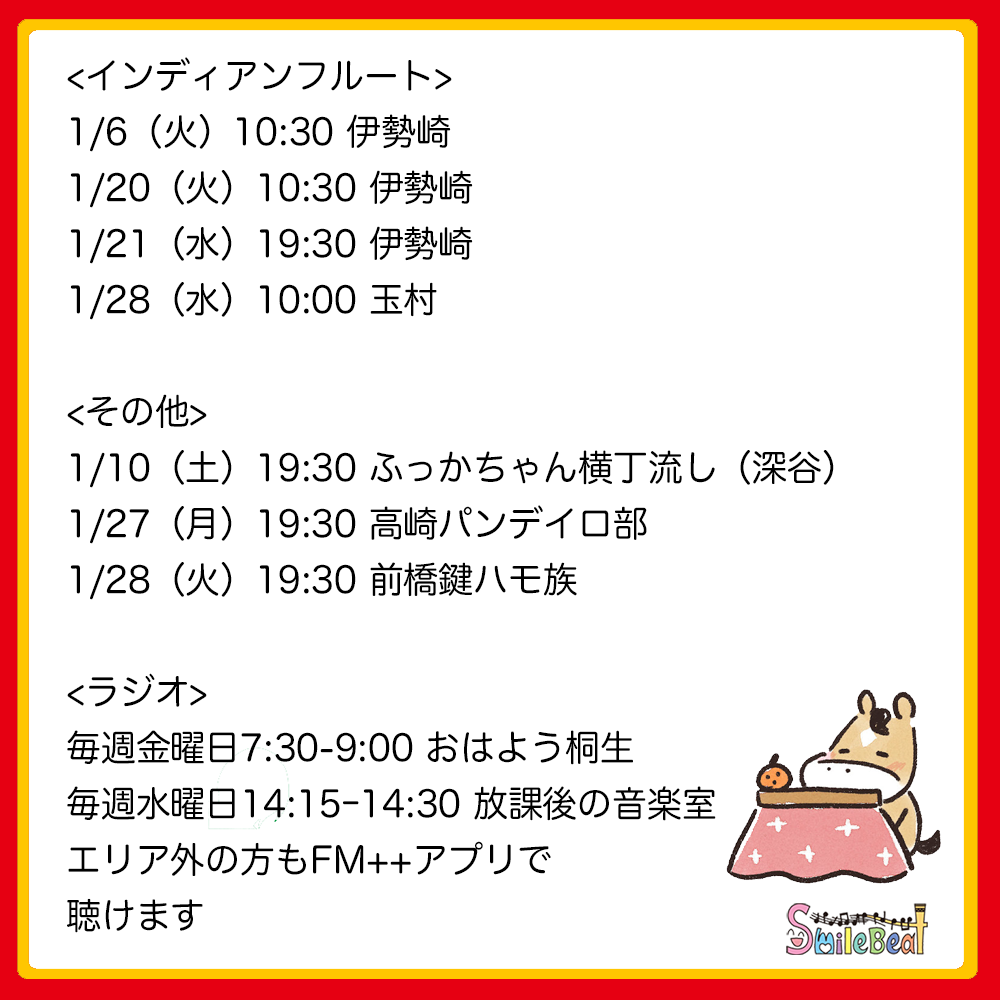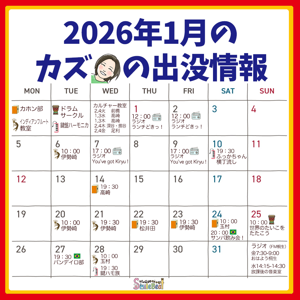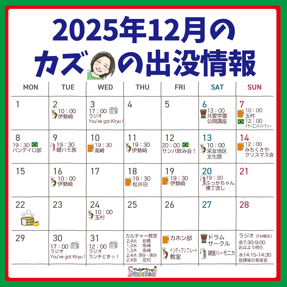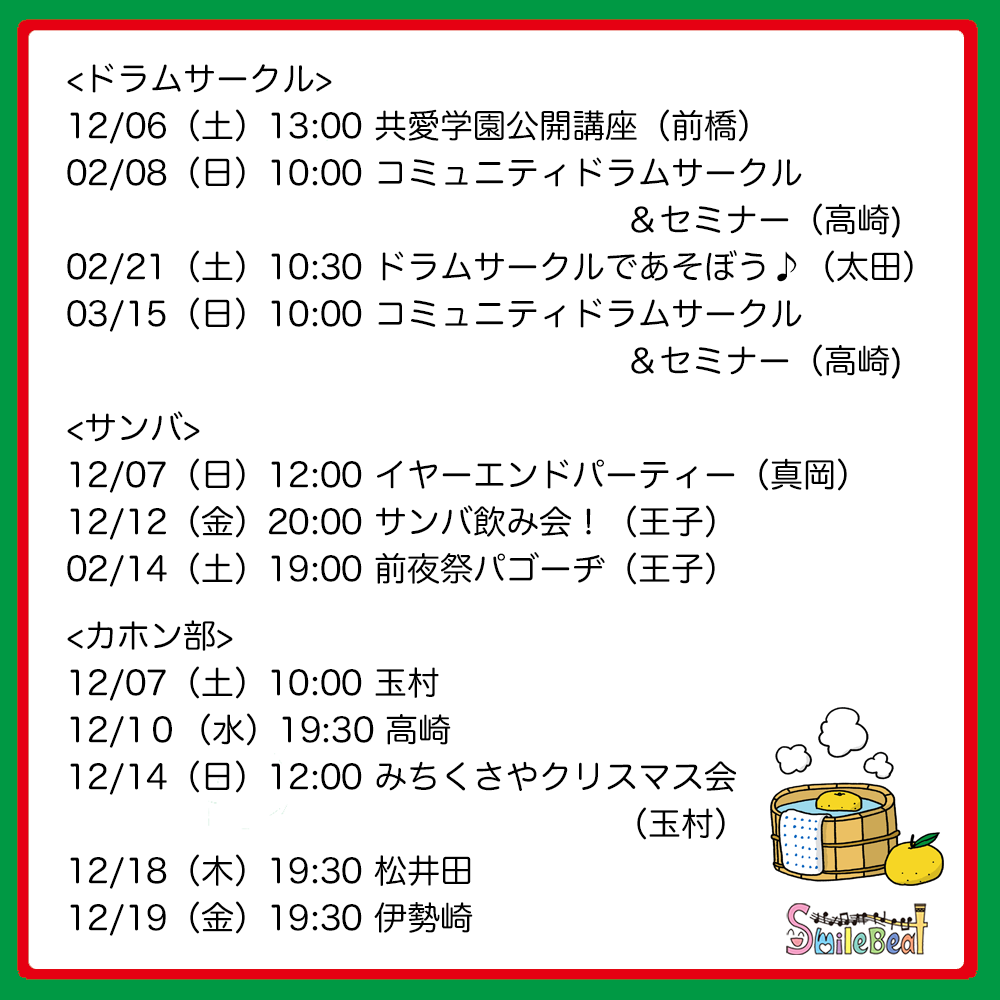予定をチェックして、ぜひスマイルビートの「楽しい音楽」をご体感下さい。